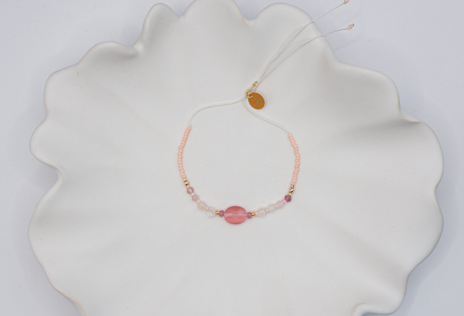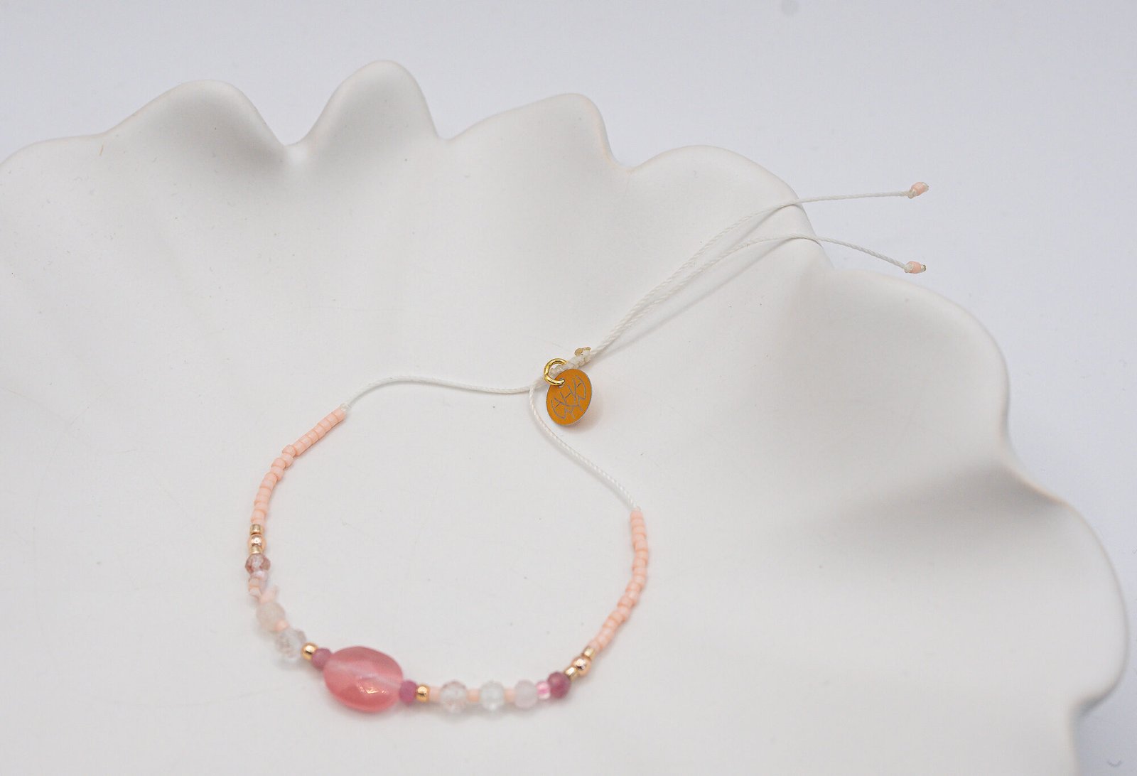 Rozmiar bransoletki jest uniwersalny dzięki zapięciu typu makrama. Wszystkie elementy są całkowicie antyalergiczne i bezpieczne dla skóry.