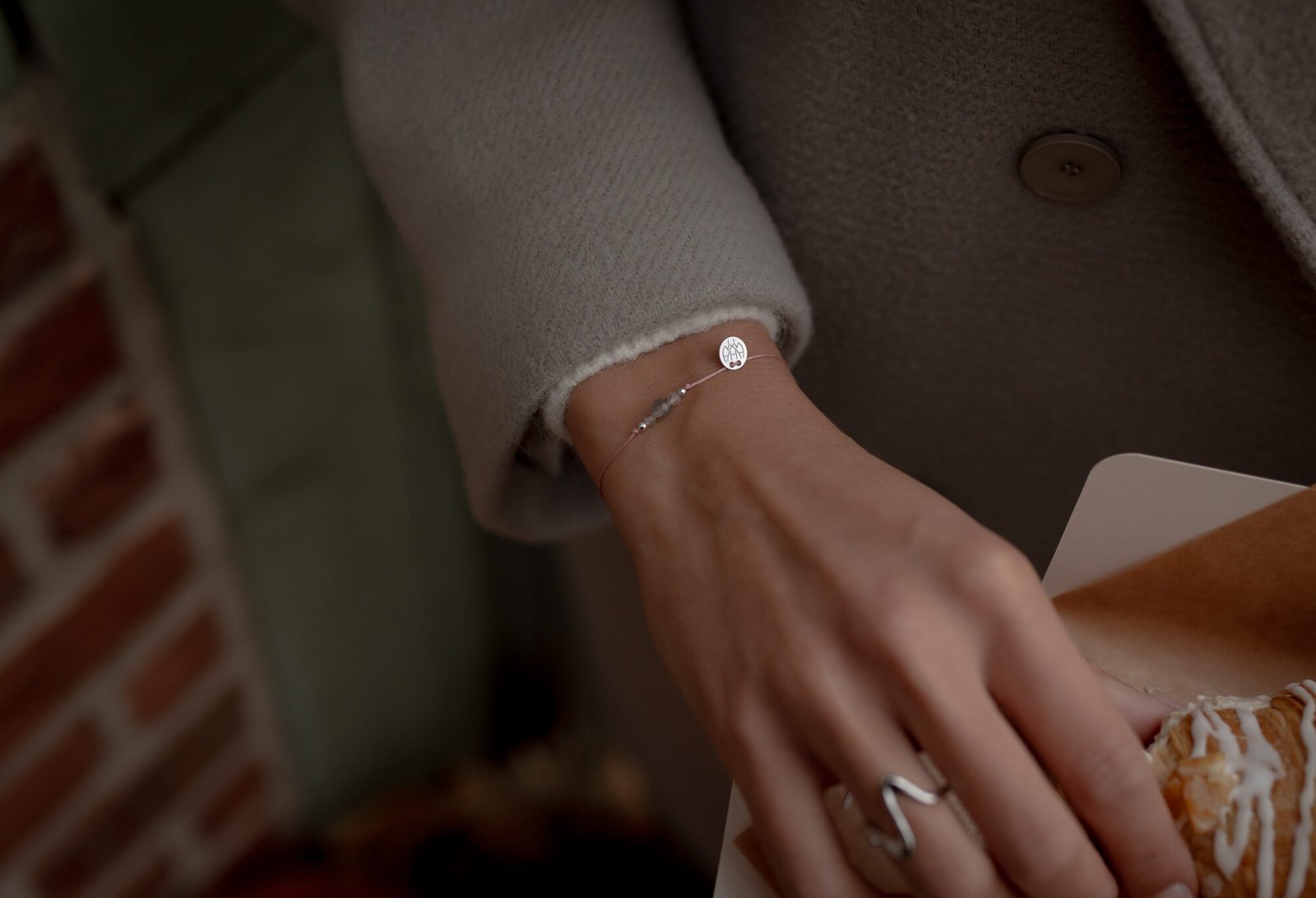 Wybierz swój ulubiony kolor sznurka i wykończenia, aby spersonalizować bransoletkę! Istnieje także możliwość wykonania bransoletki na kostkę oraz jako choker na szyje.