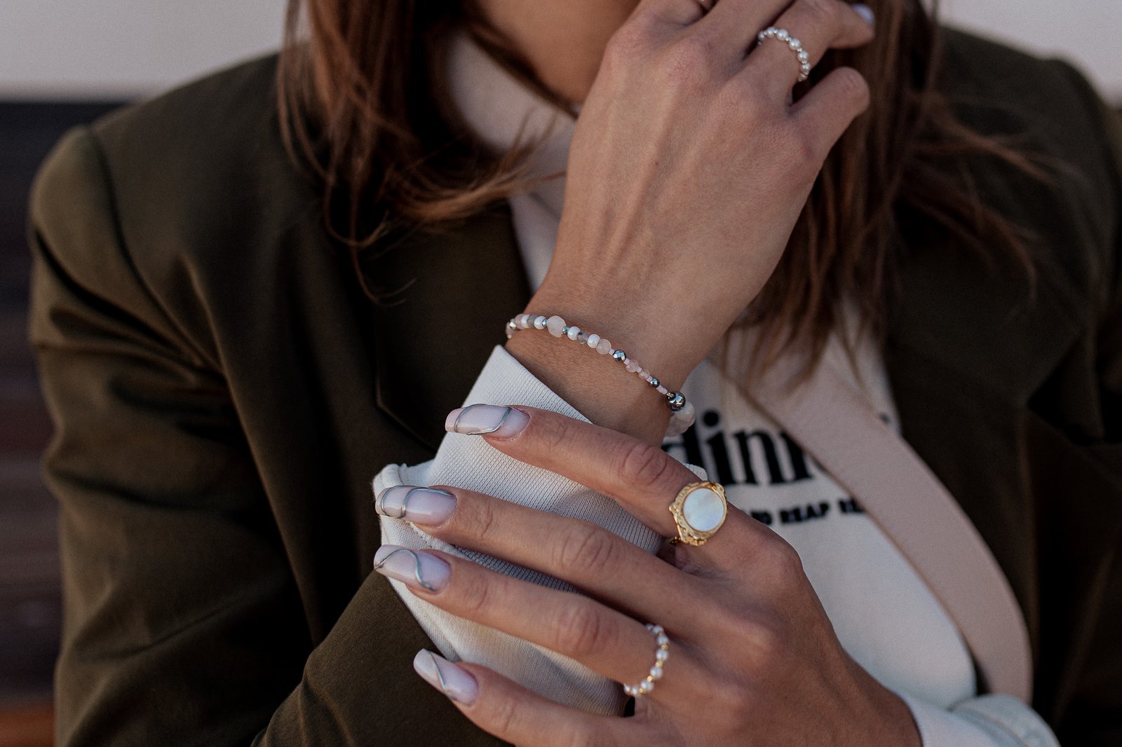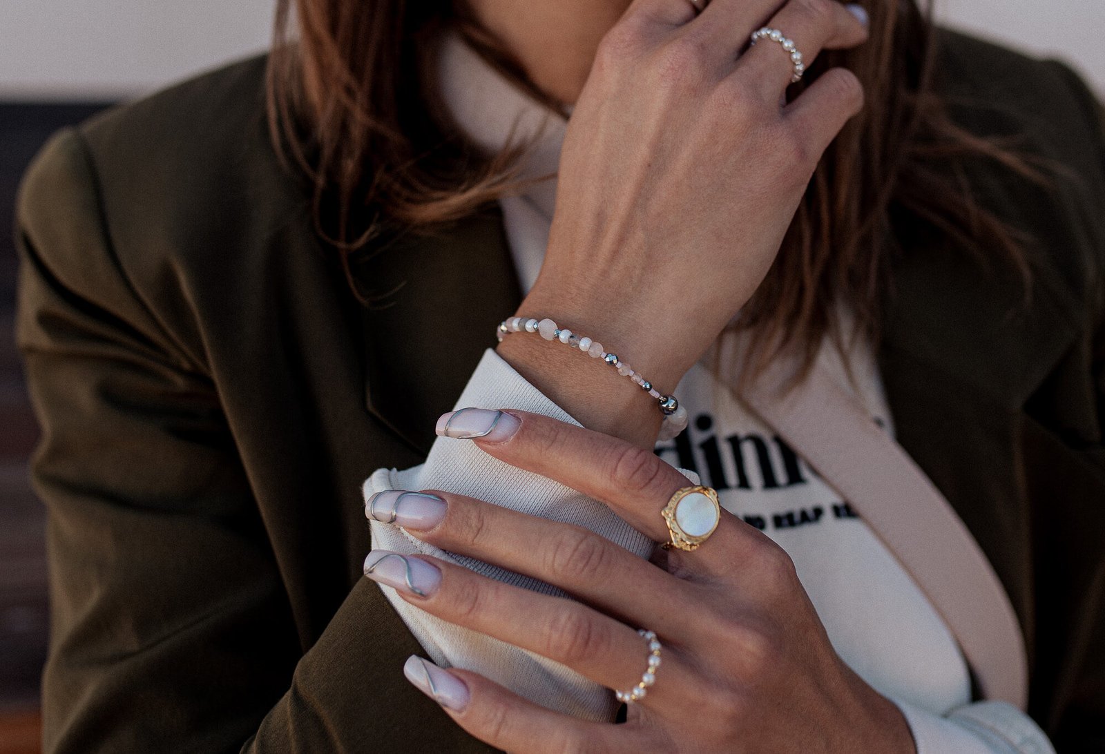 Bransoletka z Opalem Turmalinem i Kwarcem Różowym z kolekcji High powstała według naszej autorskiej konstrukcji. W bransoletce jedna część jest sztywna ze stali chirurgicznej, a druga jest elastyczna. Sprawia to, że biżuteria nie przekręca się na nadgarstku, a my możemy wybrać stronę bardziej pasującą do stylizacji.
